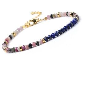 New genuine blue lapis and tourmaline with gold spacer beads bracelet. Gold over brass. Extender attached.