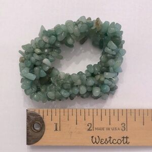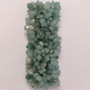 Fun and pretty bracelet with a stretchy threading. The glass beads are various shades of green.