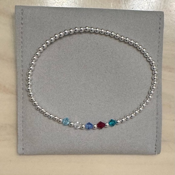 Sterling silver bracelet with gems Very dainty/small Stretch 7.5 length Hand made