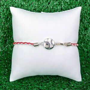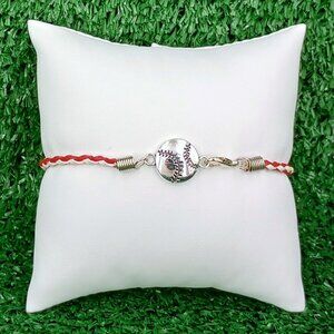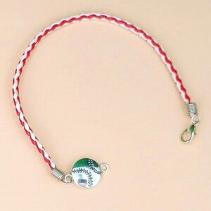 Braided Imitation Leather Anklet or Bracelet with Silver Plated Alloy Baseball Pendant