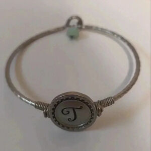 Bracelet / Bangle - J Initial - Silver Tone
