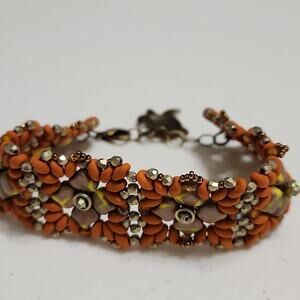 Bracelet Beaded Flowers Turtle Charm Lobster Claw Clasp Beach Vacation Boho