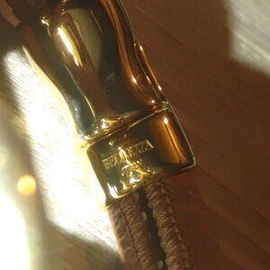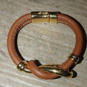 Bracelet Bellezza Italy Knot Brown Leather Gold Tone Magnetic Closure Stamped