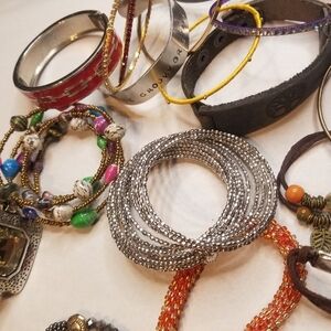 Although these are wearable and and or sellable, it is being sold as a junk jewelry lot. One cuff bracelet has a few missing stones but not noticable. Craft lots are not returnable. Items are in used condition and may or may not show signs of wear. If you have questions, ask before purchase. 1 pound ,6.9oz