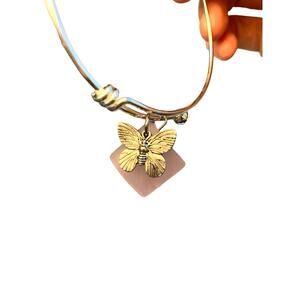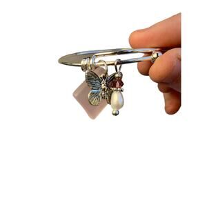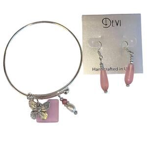 Bracelet & Earring Set Handmade, Pink Sea Glass, Butterfly Charm, Pearl, Crystal