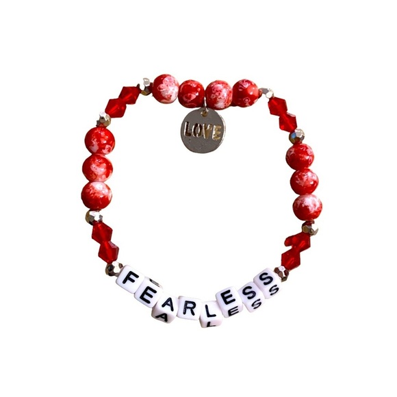 Bracelet | FEARLESS Red White Beads New With Tags Love Charm Stretchy