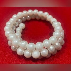 Bracelet Faux Pearls Strung Together And Coiled Vintage