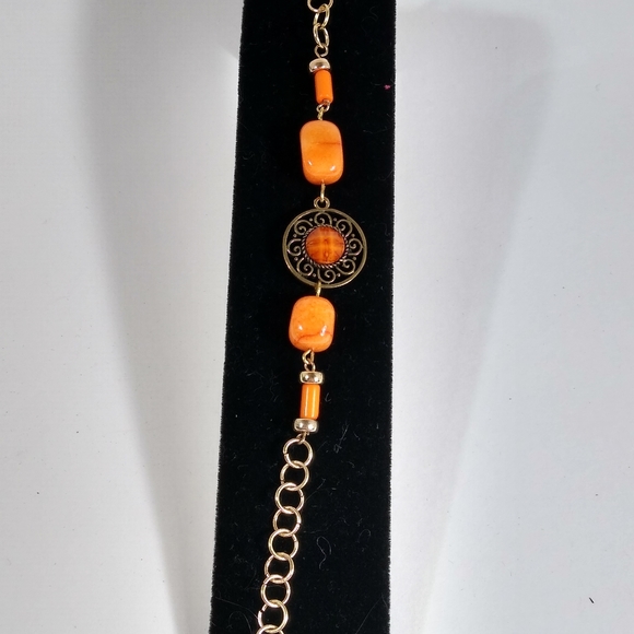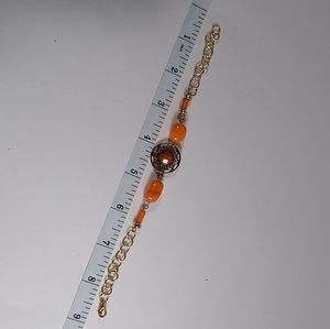 Bracelet Gold Etched Orange Bead Extender Delicate