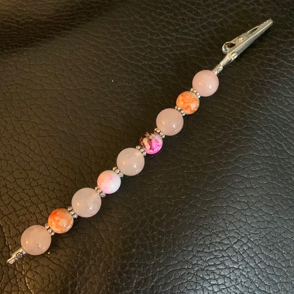 Bracelet Helper/assist Clip handmade with natural stone and glass beads with silver accents. 6 1/2” in length