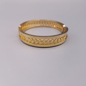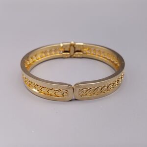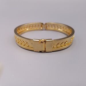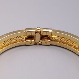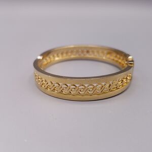 Bracelet Hinged Cuff Gold Tone Open Work Scroll Weave Unisex Clamper