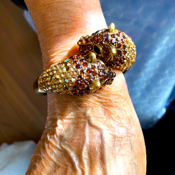 Gorgeous gold colored animal bracelet. Full of beautiful Amber and Gold Rhinestones. Fits most wrists.