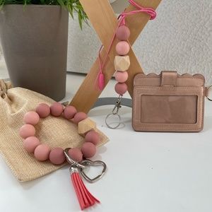 Wristlet Bracelet Keychain Silicone Wood Beads/Lanyard Teacher Badge Holder Gift Set
