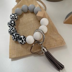 Bracelet Keychain Silicone Wood Beads/Lanyard Teacher Badge Holder Gift Set