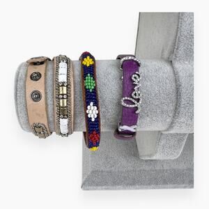 Bracelet Lot 21 Leather Wristband Strip Wrap Beaded Man Made Braided Cords Clasp