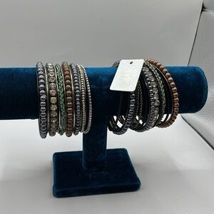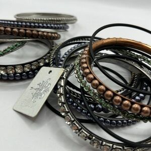 Bracelet Lot 24 Bracelet Faux Pearl Rhinestones Black and Silver Tone Bangle