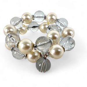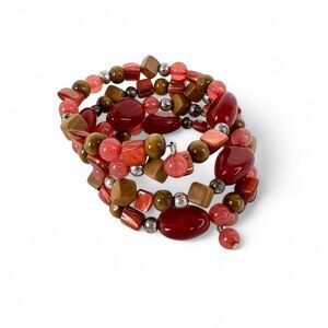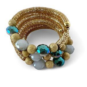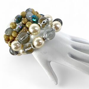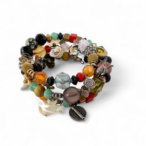 Bracelet Lot 6 Wire Coil Wrap Beaded Iridescent Colorful Charms Rhinestones