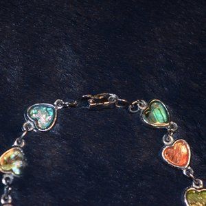 Bracelet Metal Heart Shapes Chained Abalone Sea Shells Multi-Colors Enamel Clasp