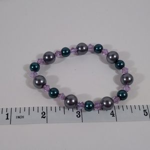 Metallic blue and gray along with purple beads create this stretch handcrafted bracelet