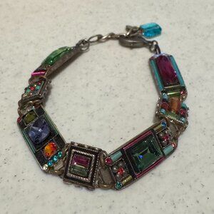 This bracelet with its vibrant mix of colorful stones and linked segments—has the hallmarks of vintage artisan costume jewelry. Length is 7 inches with a lobster clasp.