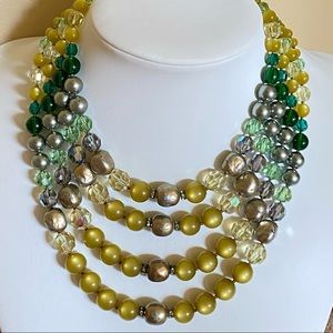 Vintage Multi Strand Green Acrylic Moonglow AB Necklace and Bracelet Set. The Necklace has 4 Strands of Various shades of green beads- Measures Approx 14”- ( shortest strand) to 18” (Longest strand)