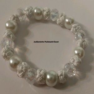 Bracelet No Metal White Pearl/Clear Crystal SPECIAL Design Hand-Made