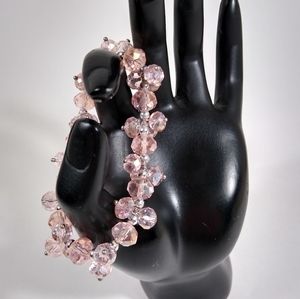 Bracelet Pink Silver Stretch Beaded Handmade