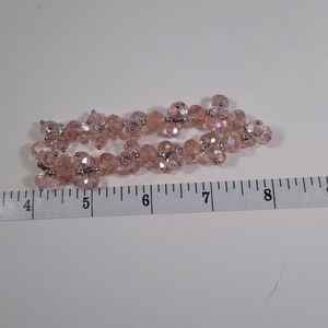 Handcrafted stretch beaded light pink and silver toned bracelet