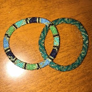 Gold, Blue and Green Matching Women’s Bracelet Set. 2 Bracelets.