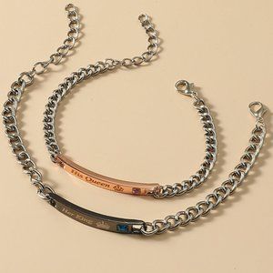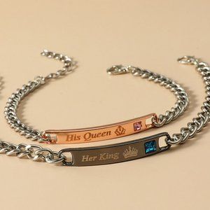 Bracelet Set King Queen Love Gold Silver Chain Rhinestone Matching His Hers Gift