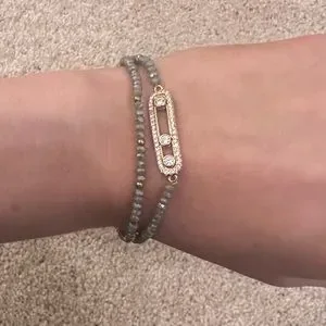 Gray and gold bracelet stack. One is just beaded. One has gold and diamond oval. Never worn, perfect conditions. Basic and perfect to wear everyday!