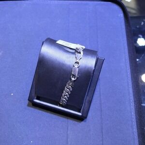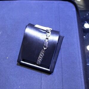 This beautiful bracelet is crafted with sterling silver 925 and features a lovely claw clasp. The chain is delicate and elegant, perfect for adding a touch of modern style to any outfit. The origin of this piece is Italy and it is an original creation, making it a unique addition to your collection. Though the age of the bracelet is unknown, its timeless design ensures that it will remain a cherished piece for years to come. The color of the bracelet is a stunning silver, making it versatile and easy to pair with any ensemble.