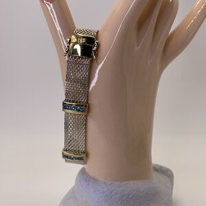 Bracelet Sterling Silver & Gold Mesh Blue Topaz Accents 925 Italy Bracelet