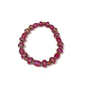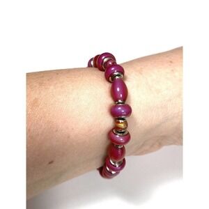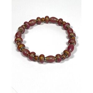 Bracelet Stretch Changes Colors Metal Beads Pink Green 6.5”