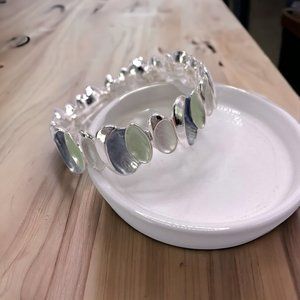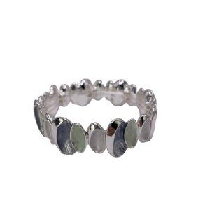 Bracelet, Stretch, Silver Tone, Blue, Green, White Inlay Oval 7.5" - 8.25"