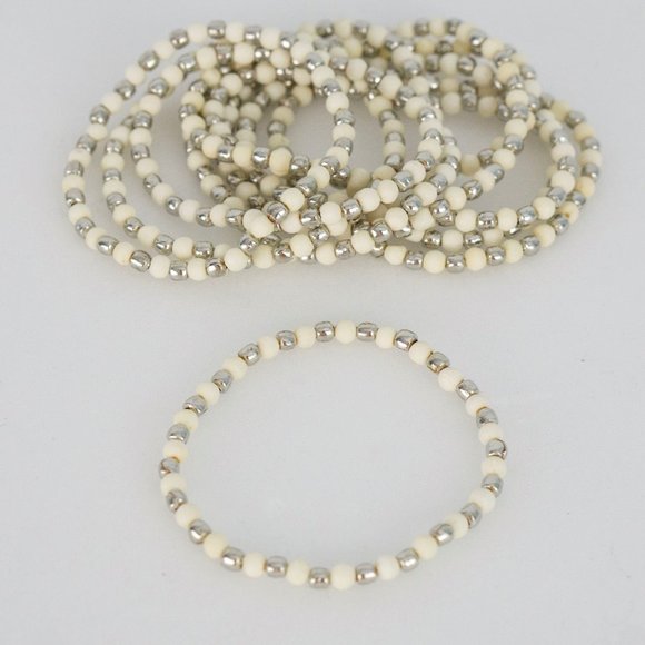 Stretch mini stackables, each one approx. 3 inch diameter, one size fits most, made of camel bone natural beads with beaded accents, perfect for stacking! Showroom floor samples.