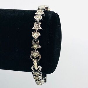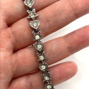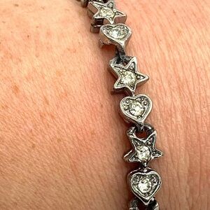 Bracelet Tennis Bracelet Stars /Hearts with Rhinestones 7.25” Gunmetal Tone