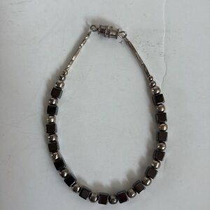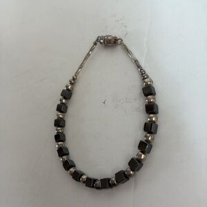 Bracelet alternating cubes hematite and silver beads with barrel clasp close
