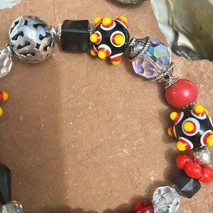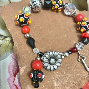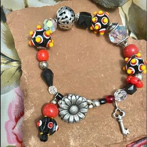 Bracelet beads sterling silver vintage crystals and finding & button close