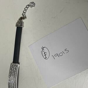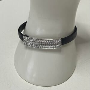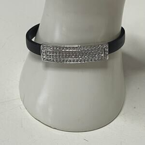 Bracelet black with silver tone and rhinestone slide signed costume jewelry