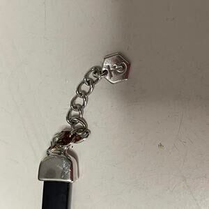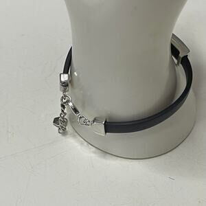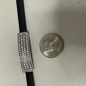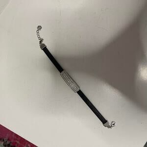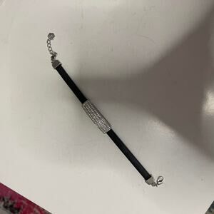 TC signed bracelet costume jewelry black with silver tone and rhinestone slide. Bracelet is about 7" in length with a 1" extension.
