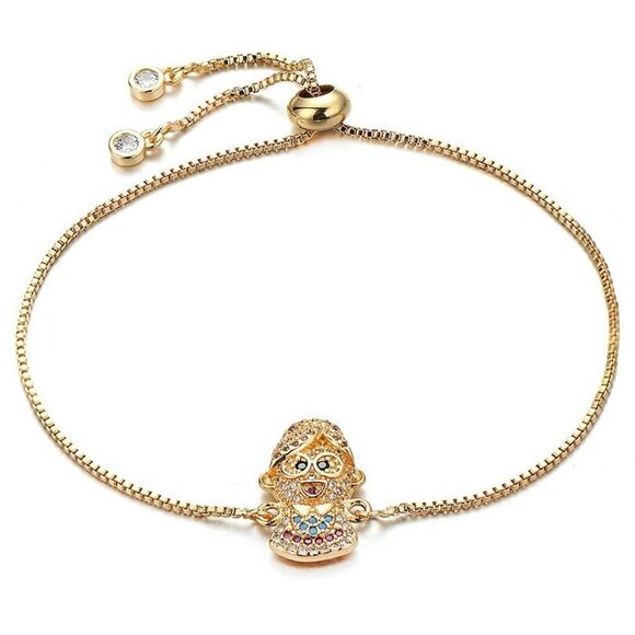 Yellow Gold Round Cubic Zirconia Cute Grandma Nana Adjustable Bracelet
