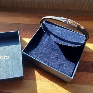 Bracelet or Anklet Italian "di fulco" Gioielli S.Steel Black Rubber Sailor Gold