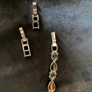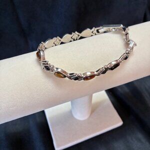 Bracelet - silver tone with black and brown stones, expandable links. 2 links can be removed or not. Smallest size is 7" and with both links added 8 1/2".