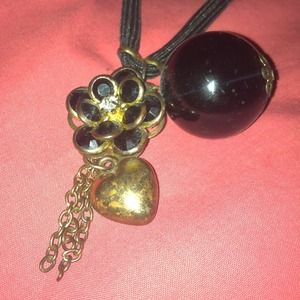 Beautiful black and gold stretchy band bracelet with dangling flower and ball