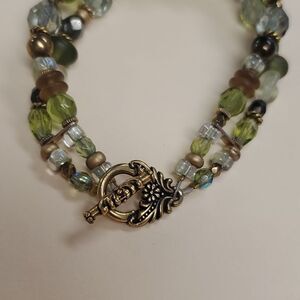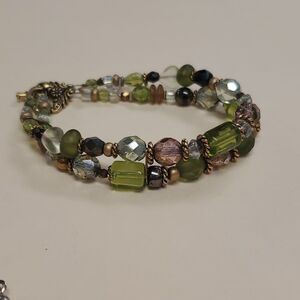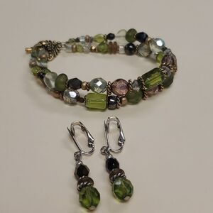 This is a bracelet and clip on earrings set. The bracelet has a gorgeous closure. The bracelet does not stretch and has about a 6" circumference.