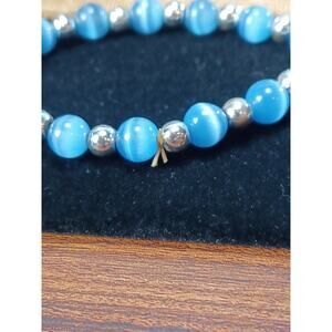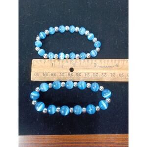 Bracelets 2 Blue Bold Beautiful Stretch Iridescent Sky Blue Marble Beads Unique