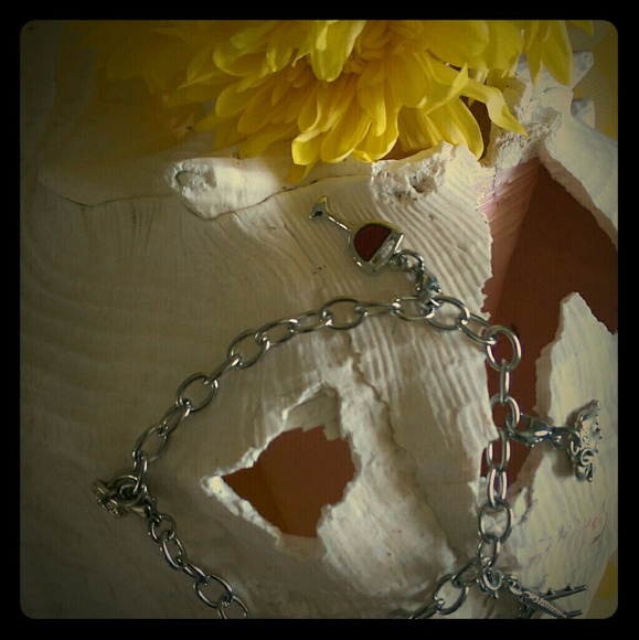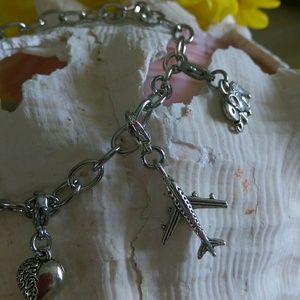 Handmade stainless steel chain, with travel theme antique silver charm.