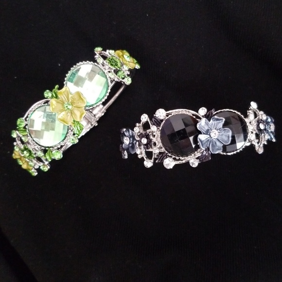 New bracelets, silver tone, with water green and black stones. Each one is $14. NOTE: Please specify the one you like below after purchasing.