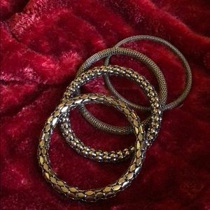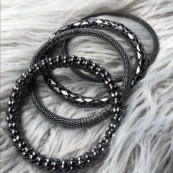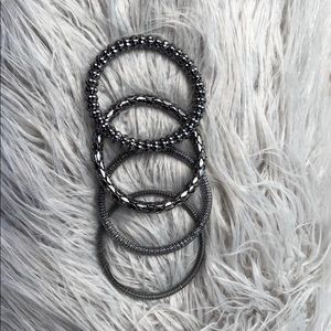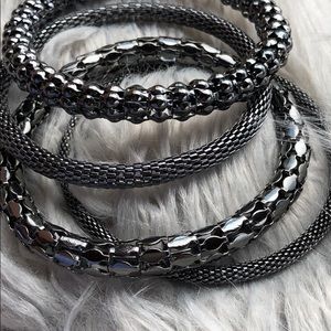 @athriftycloset I was curious because I had some bracelets just like these from the Gap and I really liked them! You mentioned no tarnishing, are they silver? They look black/charcoal grey in the picture?