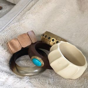 5 Bangles (2 wood,2 lucite, 1 metal)
